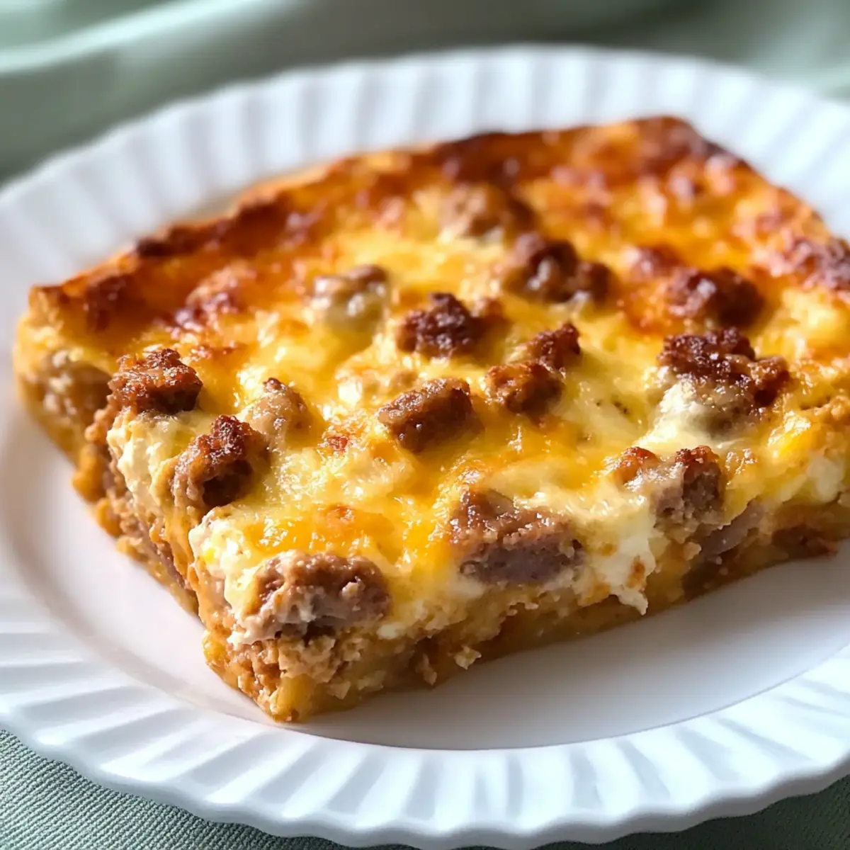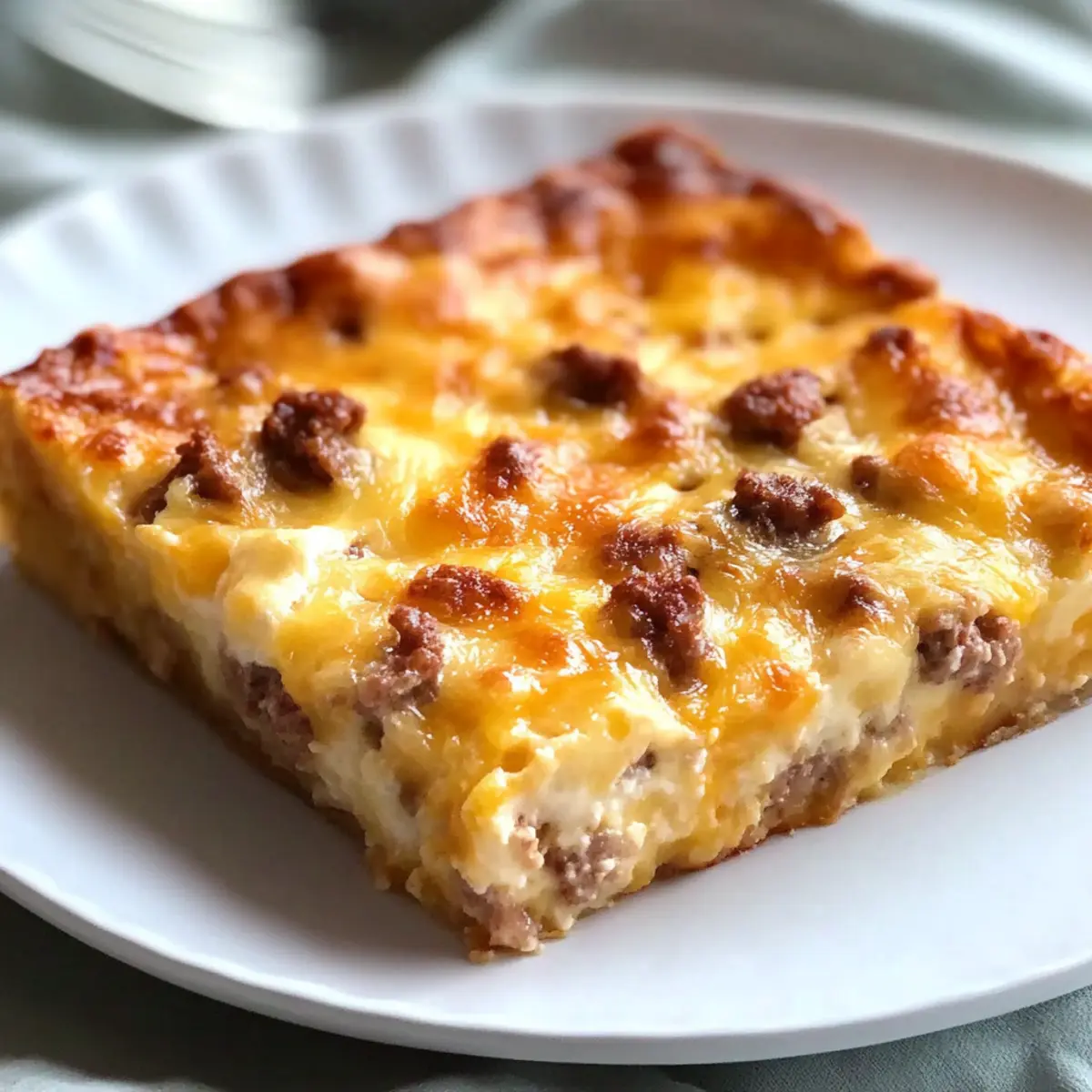 Layering Tip: Ensure even distribution by sprinkling cheese and sausage uniformly; this guarantees every slice of your breakfast casserole has balanced flavor in every bite.