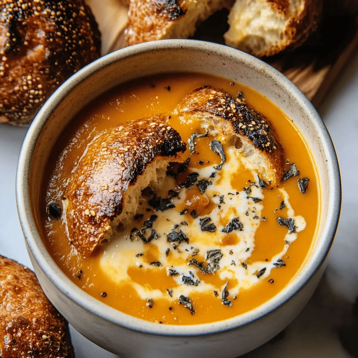 - Crusty Artisan Bread: Slices of warm, crusty bread provide a satisfying crunch, perfect for dipping into the velvety soup.
