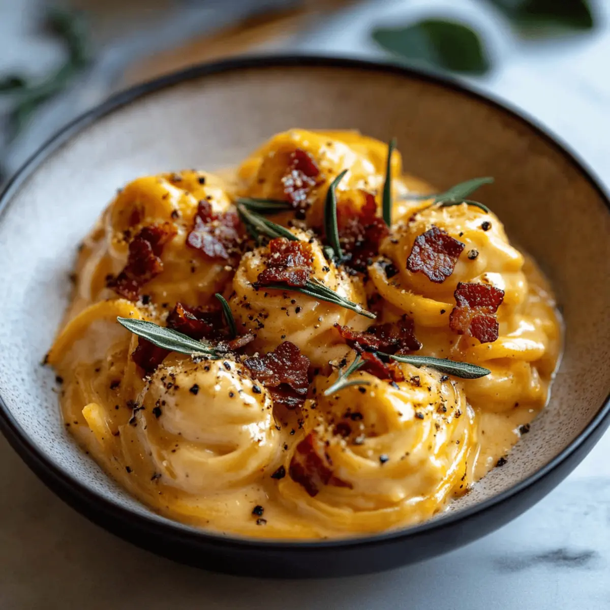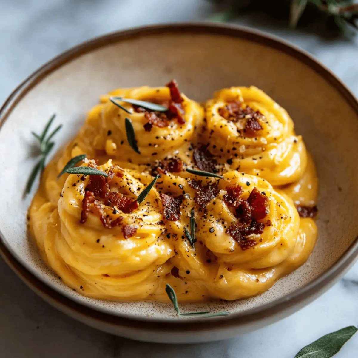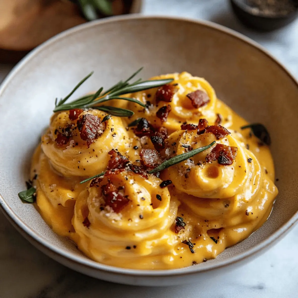 Indulgent Butternut Squash Pasta Carbonara with Rosemary Bacon