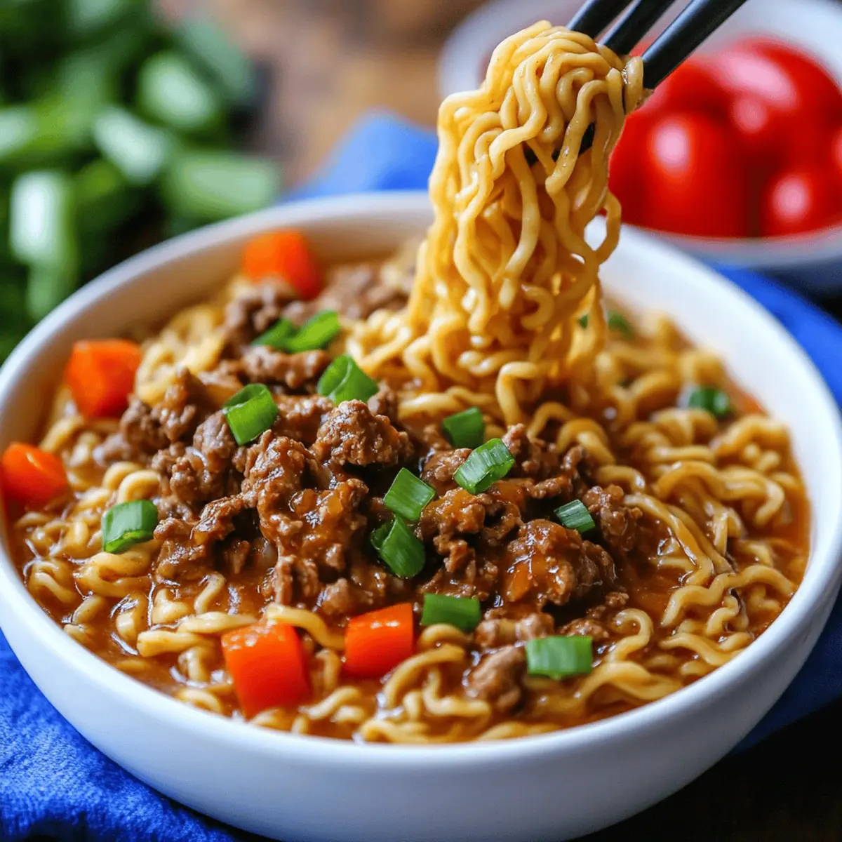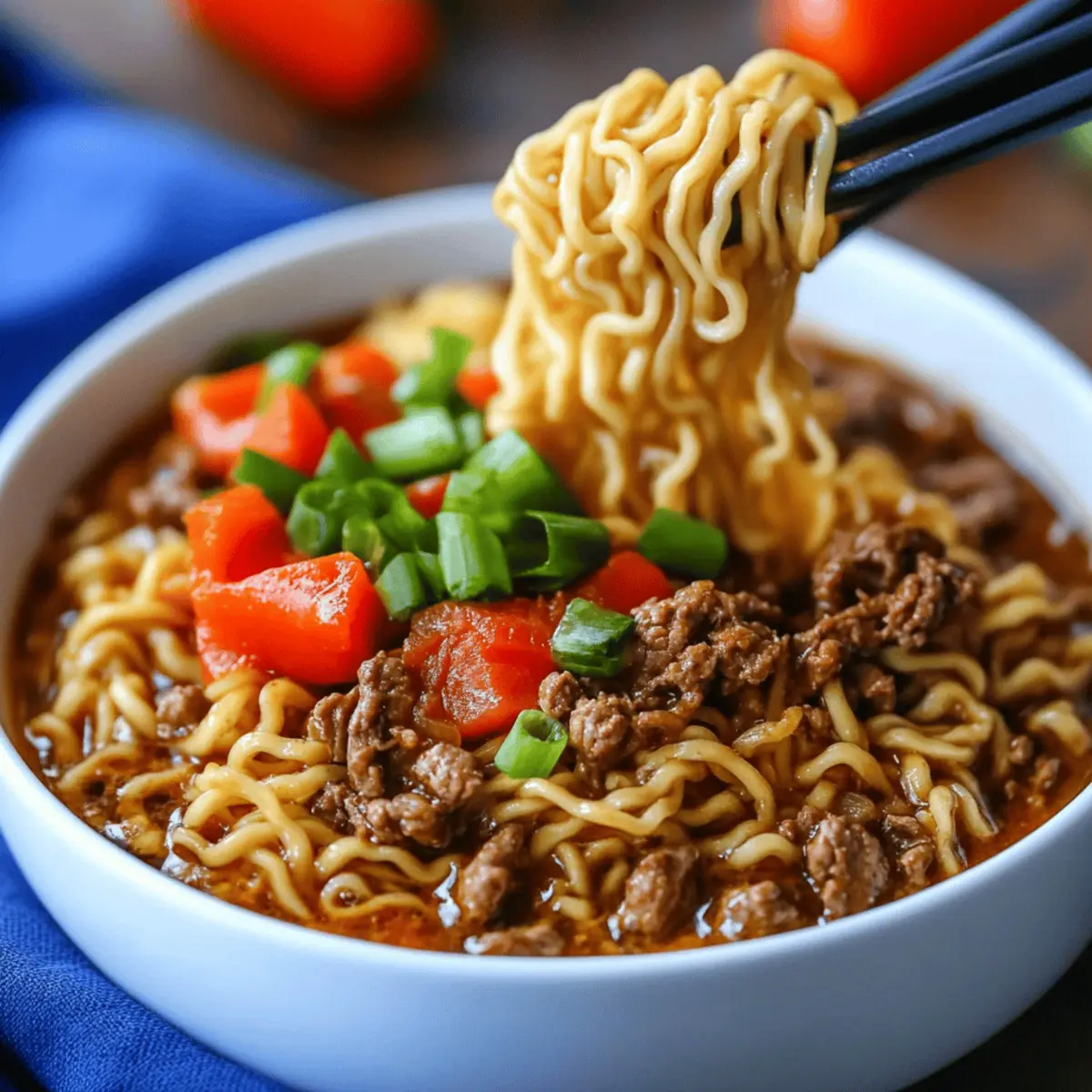 As I stirred the broth, a heavenly scent wafted through my kitchen, instantly transforming it into a cozy haven. This Slow Cooker Beef Ramen is my go-to for quick weeknight meals that don't compromise on flavor or comfort. With tender ground beef simmering in a rich, savory broth, it’s a satisfying dish that brings the family together and warms the heart. The beauty of this recipe lies not only in its ease—simply set your slow cooker and let it work its magic—but also in its adaptability; you can customize it to fit your taste preferences and pantry staples. Whether you're a busy parent or just looking for a delicious homemade meal, this recipe serves as the perfect solution. Curious how to make a bowl of warmth and joy? Let's dive in!