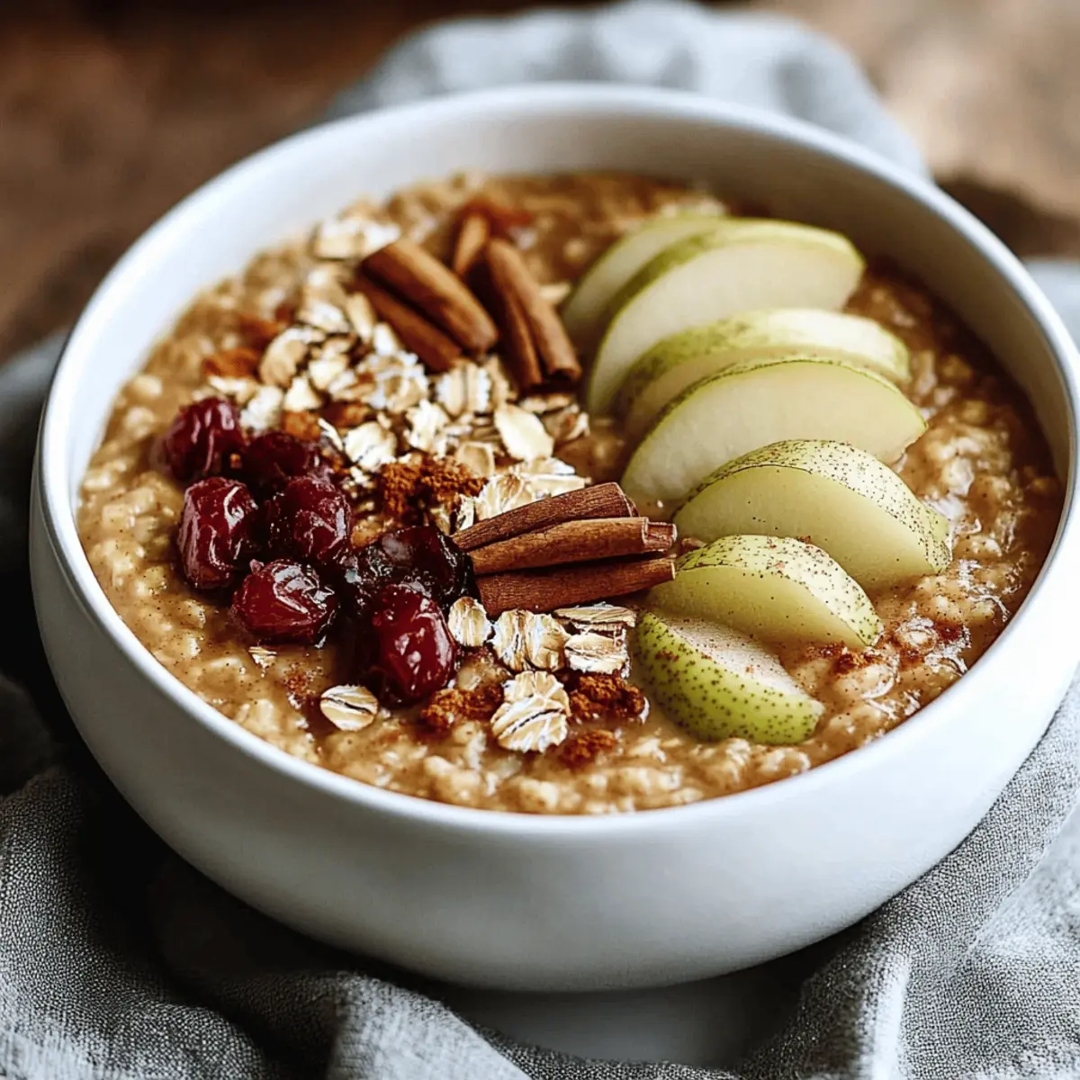 The aroma of autumn wafts through my kitchen as I stir together this Slow Cooker Pumpkin Oatmeal with Pears and Spices. Cozying up with a warm bowl of oatmeal shouldn’t just be a seasonal delight; it's a comforting ritual I adore year-round. This recipe takes just minutes to prep, then allows your slow cooker to work its magic while you go about your day. Packed with nutrients from steel-cut oats and the natural sweetness of ripe pears, it's the perfect jumpstart for busy mornings or lazy weekends. Plus, you can easily customize it to suit your taste! What flavor combinations will you explore while savoring this delightful fall-inspired breakfast?