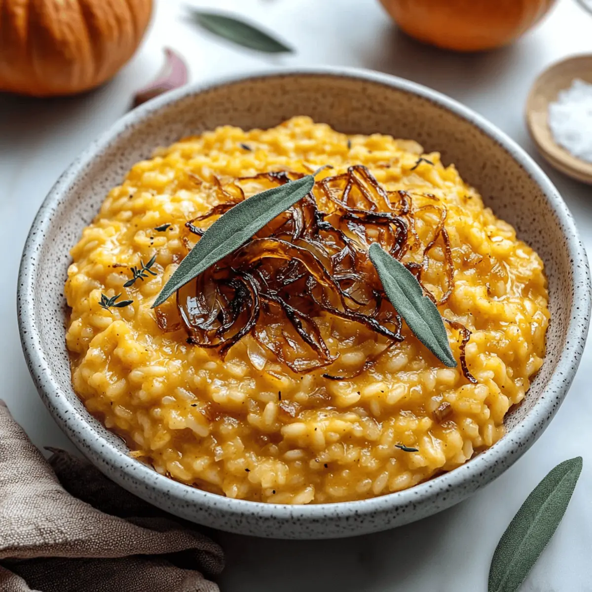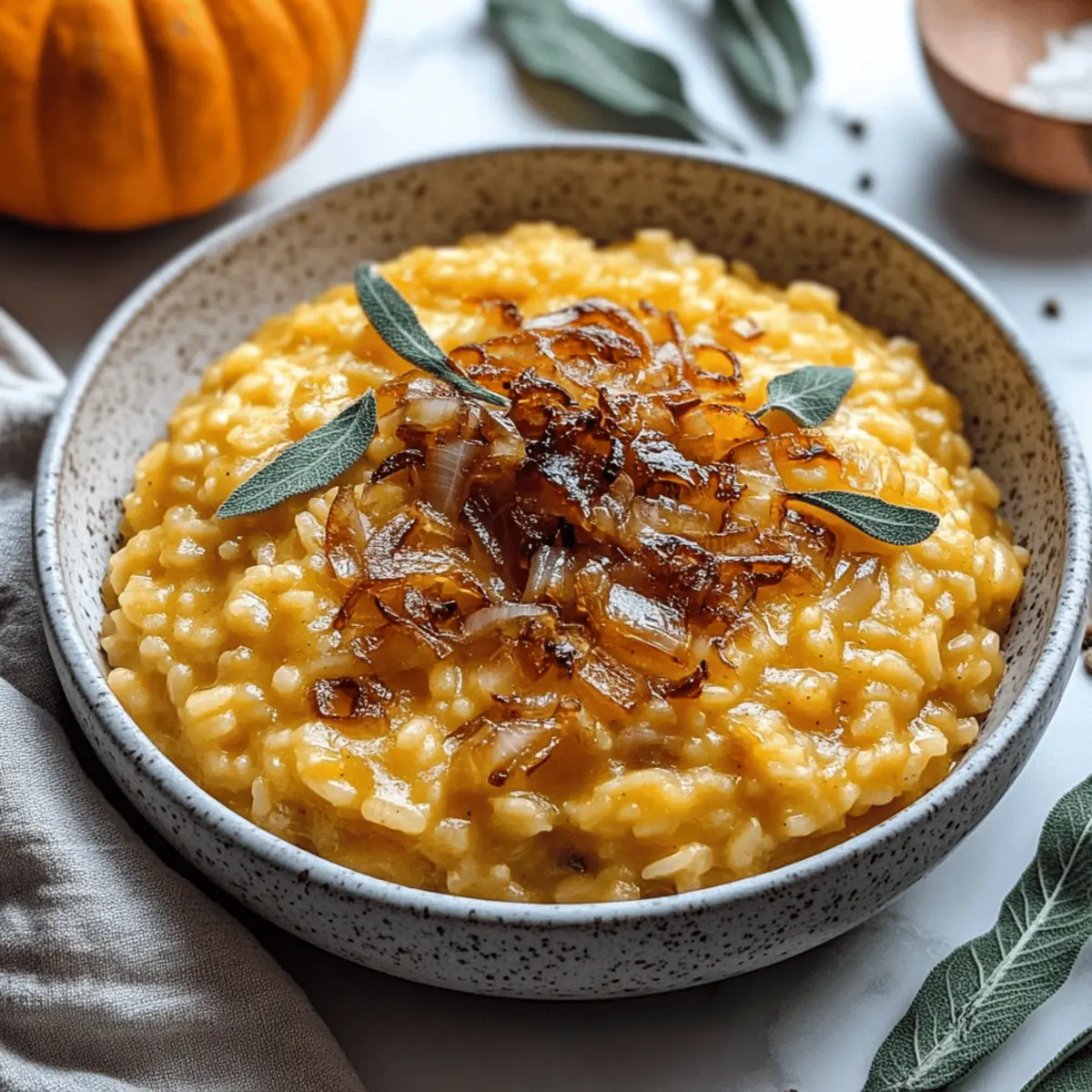 Creamy Pumpkin Risotto with Cider Caramelized Onions Bliss