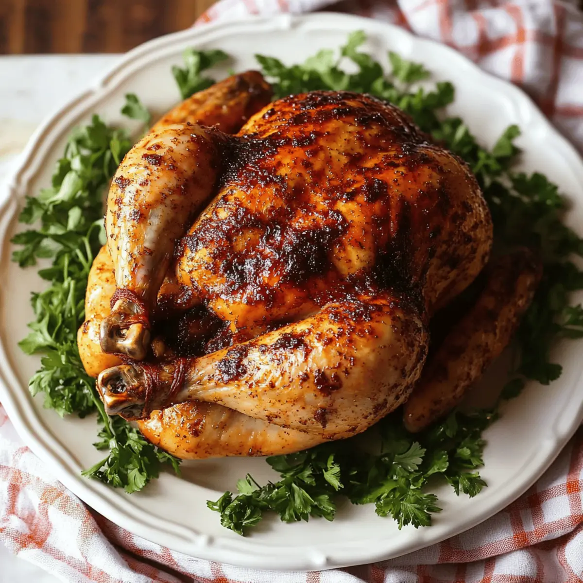 Pat the whole chicken dry with paper towels, ensuring it's moisture-free for crisp skin. Season the chicken generously inside and out with kosher salt and freshly ground black pepper. Next, rub the spice mixture all over the chicken, getting under the skin for maximum flavor infusion.