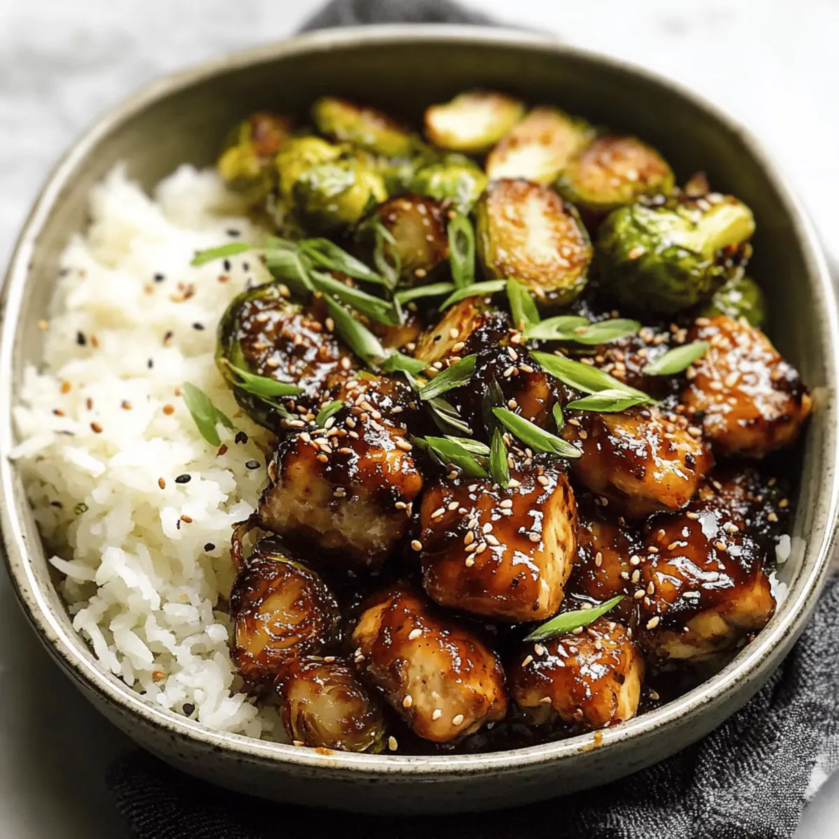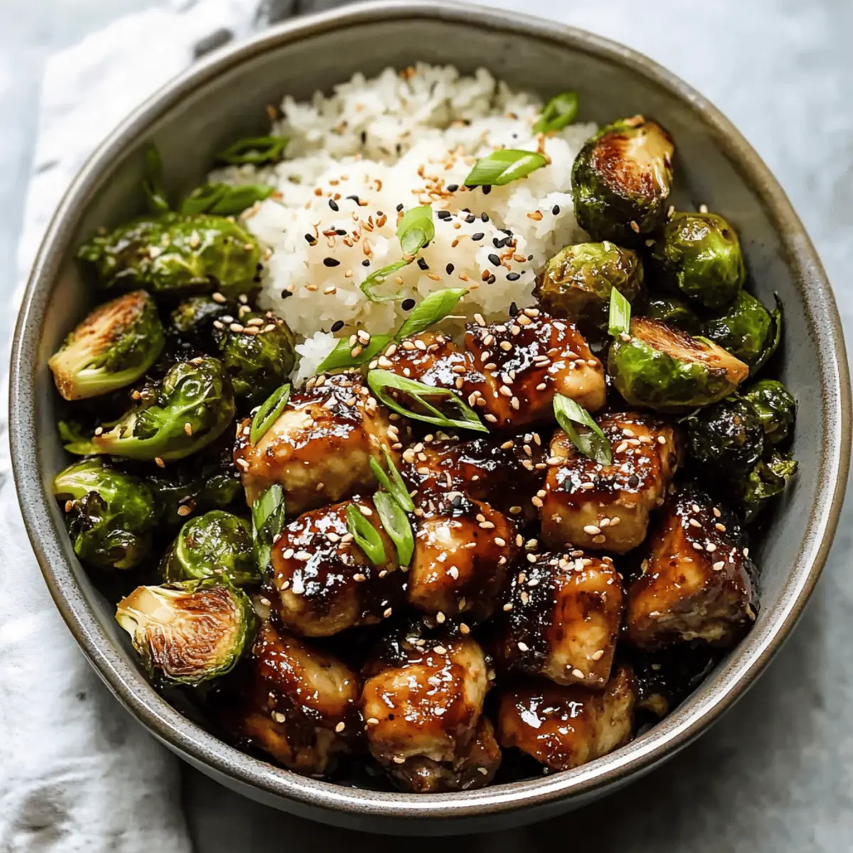 Flavor Explosion: The ginger-sesame sauce infuses every bite with a rich, savory flavor that pairs beautifully with the crispy Brussels sprouts.