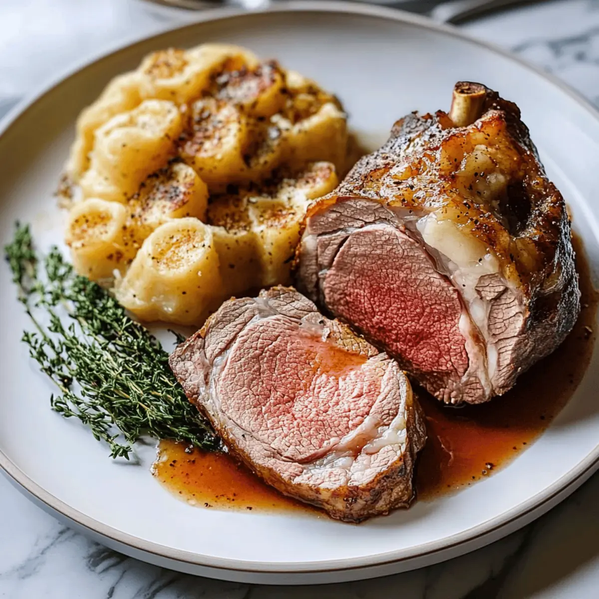 Heat a cast iron skillet over high heat until smoking hot. Carefully transfer the rested roast to the skillet, searing each side for 1-2 minutes until you achieve a beautifully caramelized crust. This quick sear will elevate the flavor profile, creating a delectable contrast with the juicy interior.