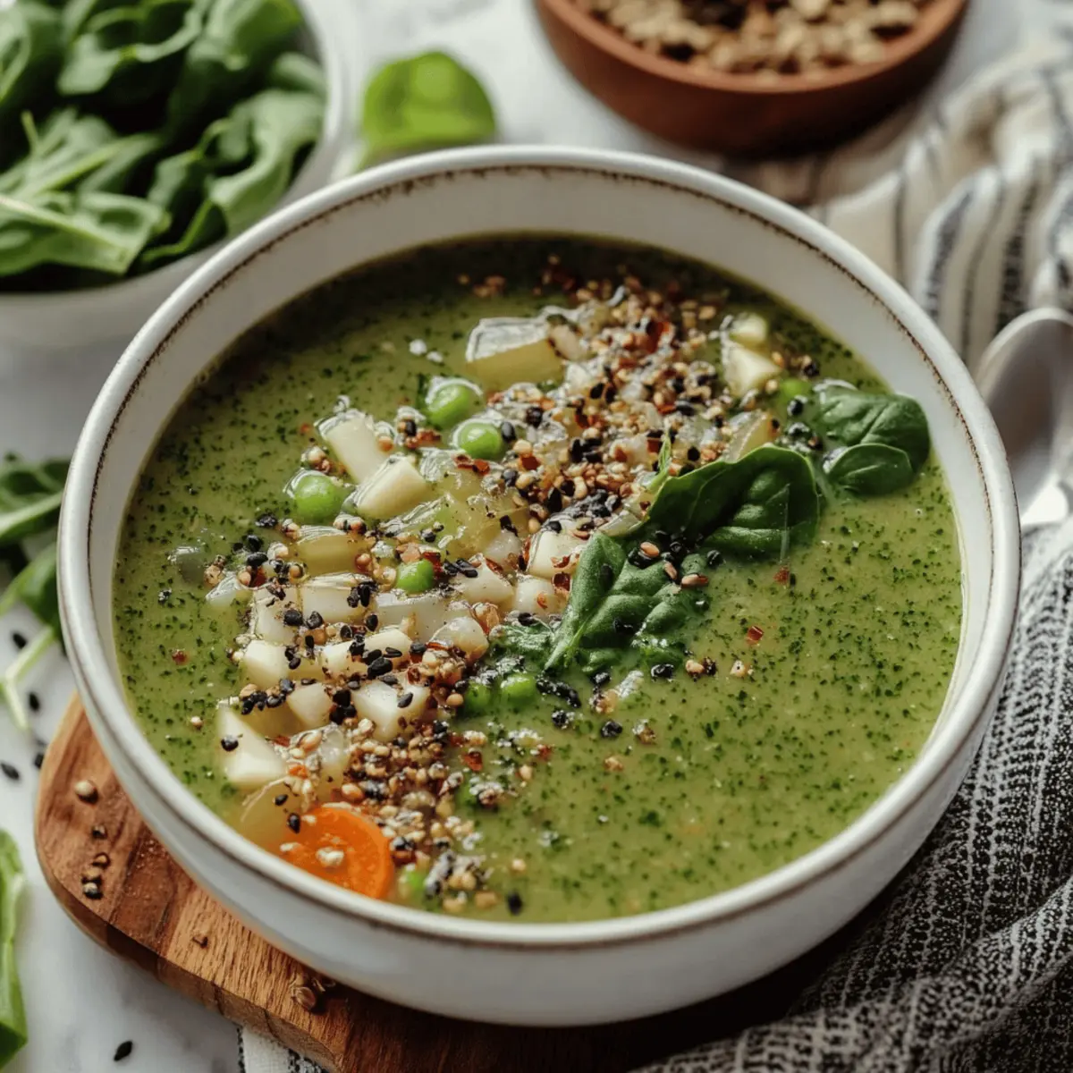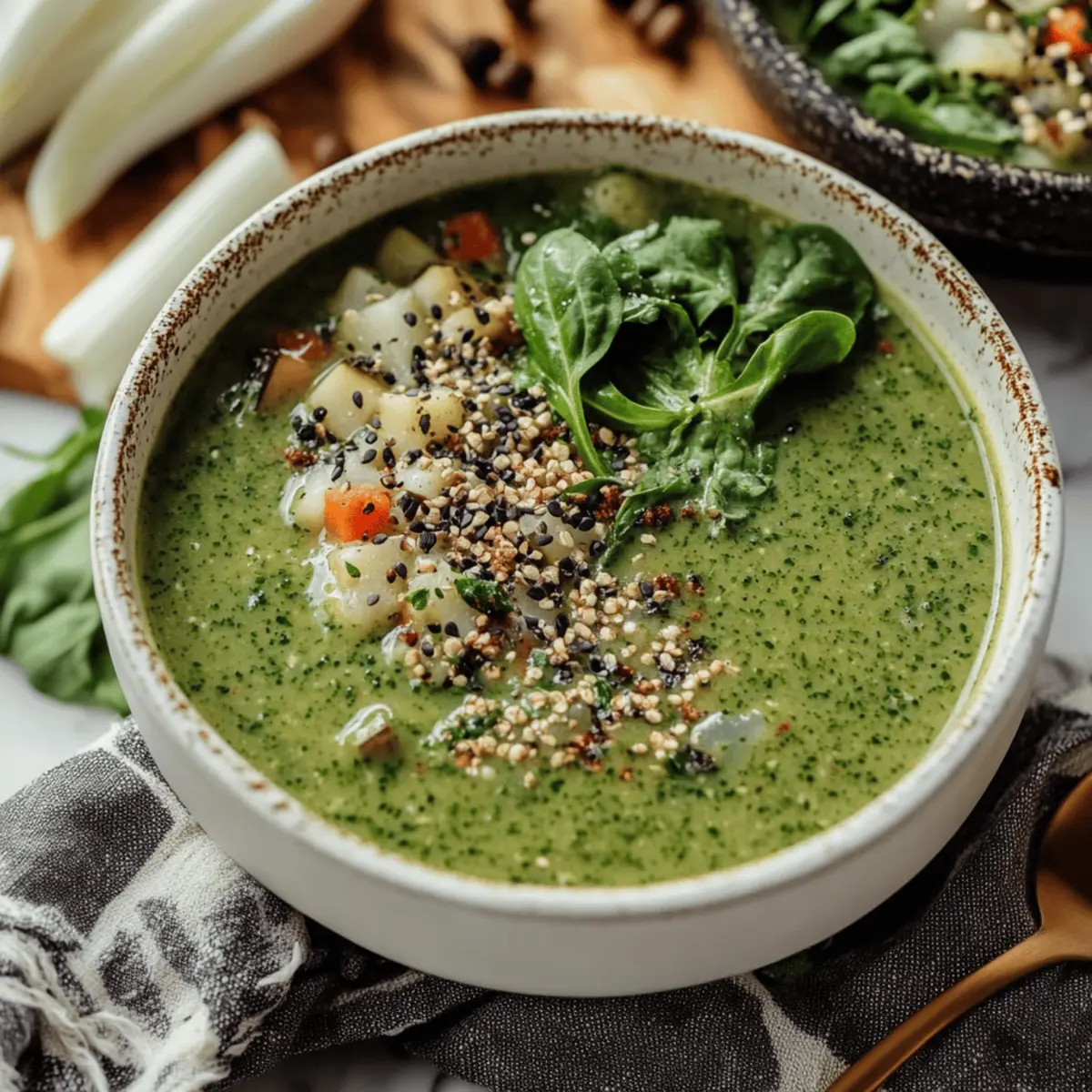 Healthy Eating Made Easy: This Big Green Soup brings together nutrient-rich veggies that support your immune system effortlessly. Quick Preparation: With minimal prep time, you’ll spend less time in the kitchen and more time enjoying your meal. Versatile Ingredients: Feel free to switch out veggies based on the season, ensuring each bowl remains exciting. Creamy Texture Without Dairy: Soaked cashews create a rich, satisfying creaminess while keeping it entirely plant-based. Crowd-Pleasing Flavor: Its delightful blend of flavors and spices makes it a favorite at any gathering – it's guaranteed to impress! So, if you’d love to explore more delicious soup ideas, check out our healthy soup recipes that cater to every palate!