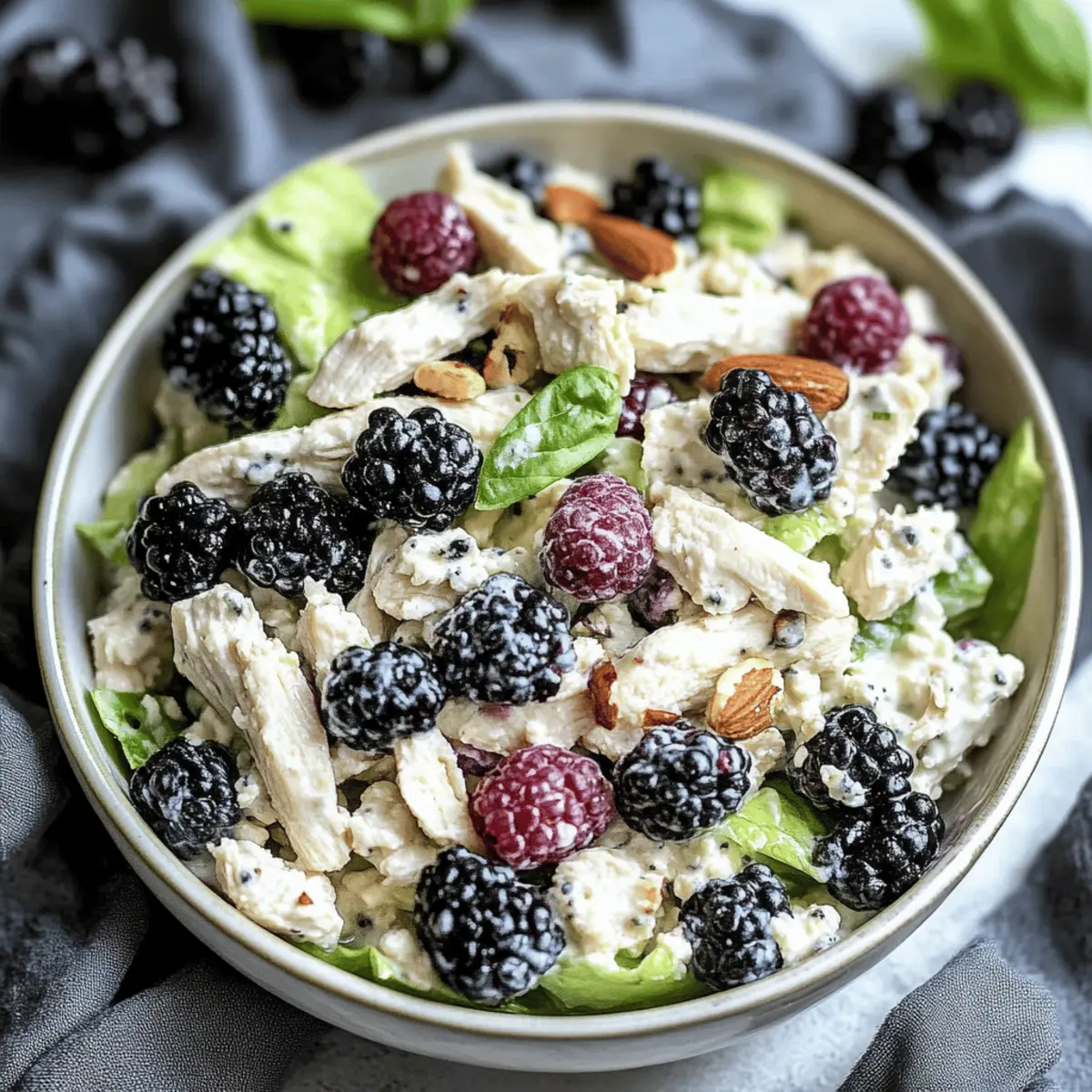 As I stood in my kitchen, the scent of roasted chicken mingling with the sweetness of fresh blackberries danced in the air, reminding me of summer picnics and vibrant gatherings. This Low Carb Blackberry Cottage Cheese Chicken Salad is my go-to dish when I crave something light and refreshing that doesn't skimp on flavor. With the creamy cottage cheese harmonizing beautifully with the juicy blackberries, this salad is not only a feast for the senses but also a quick meal option that's perfect for any day of the week. Whether you’re tackling a busy workday or preparing for a weekend gathering, this recipe will delight with its nutritious blend of protein and vibrant colors. Plus, it offers the bonus of being an exciting, low-carb choice that fits perfectly into a healthy lifestyle. Ready to add a burst of freshness to your mealtime? Let’s dive into how to whip up this delightful salad!