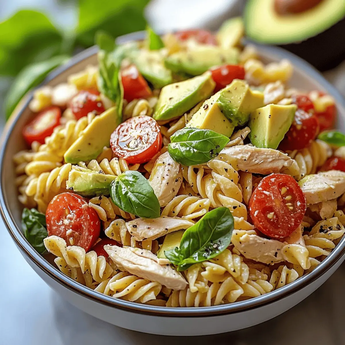 Healthy Chicken Pasta Salad with Avocado, Tomato