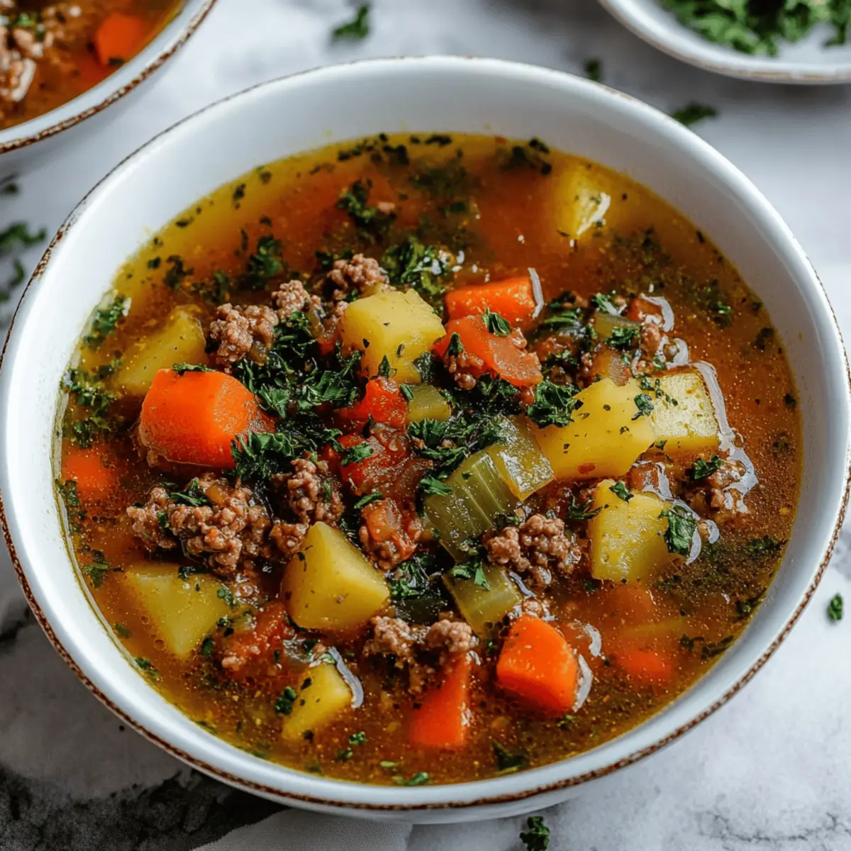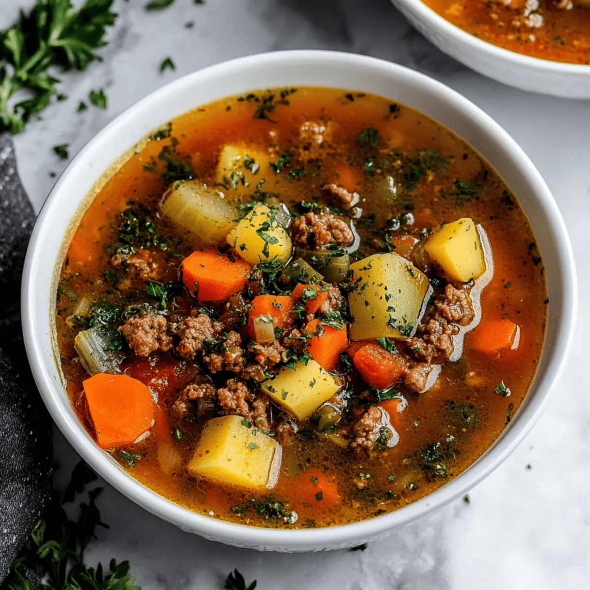 Comforting: This Healthy Hamburger Soup is like a warm hug in a bowl, perfect for chilly nights.