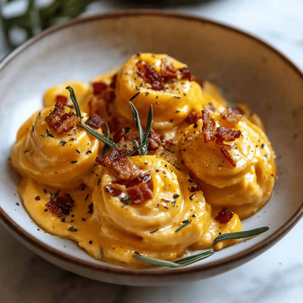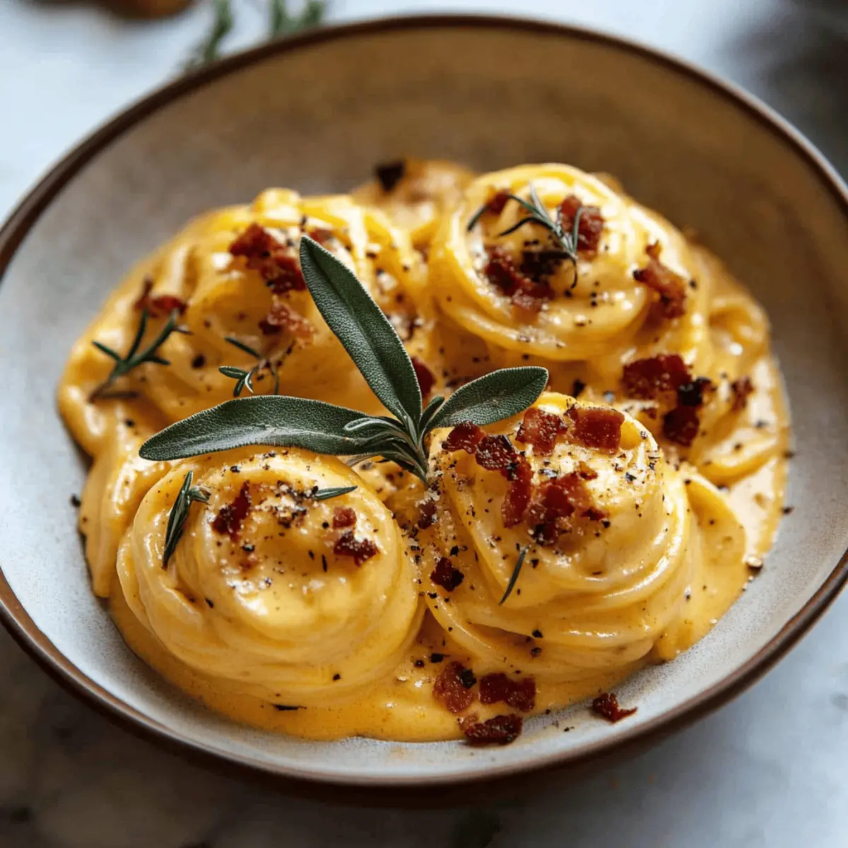 Indulgent Butternut Squash Pasta Carbonara with Rosemary Bacon