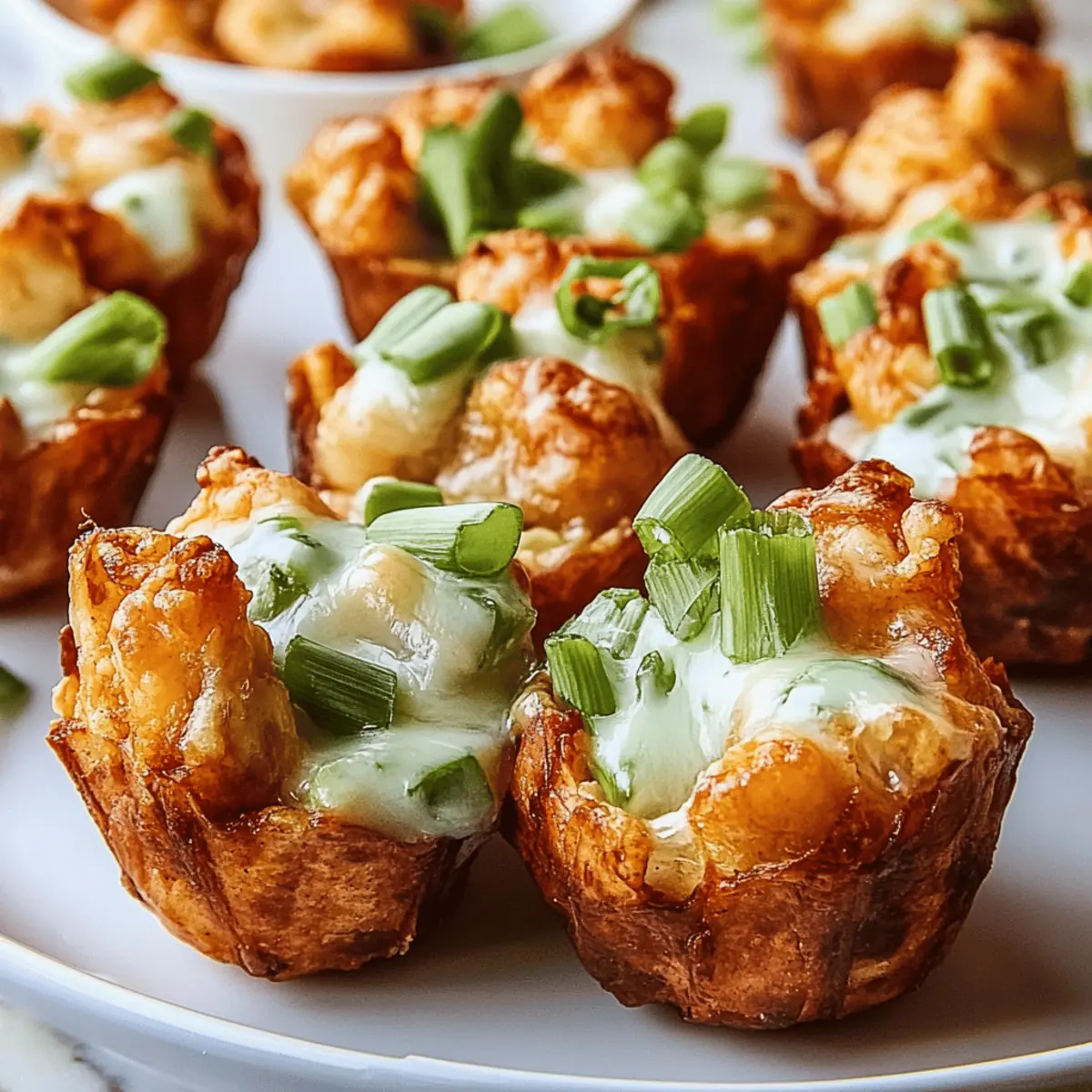 Top each bite with the reserved carrot and celery mixture, adding that extra freshness. Serve your Buffalo Blitz Bites immediately alongside ranch dressing for dipping. These little bundles are sure to impress and satisfy your guests!