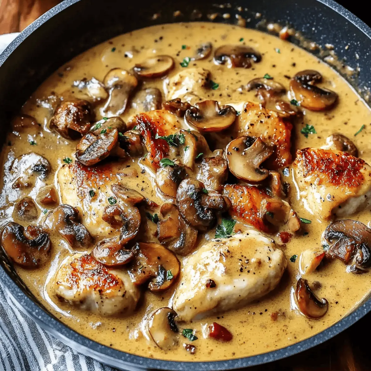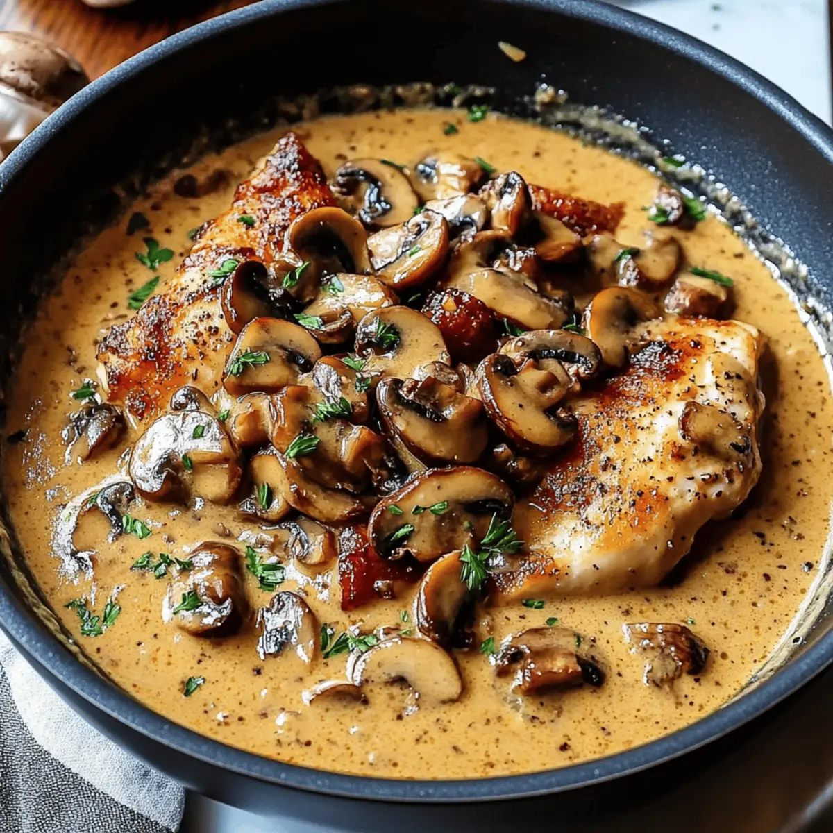 Irresistibly Creamy Smothered Chicken in Mushroom Wine Pan Sauce
