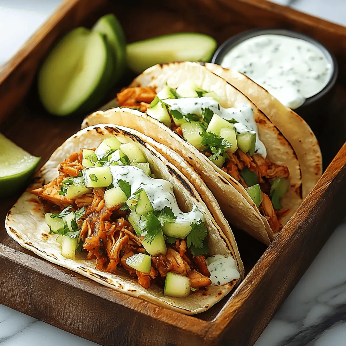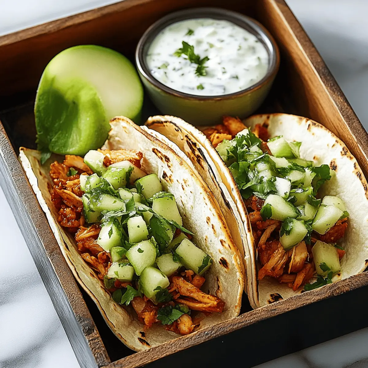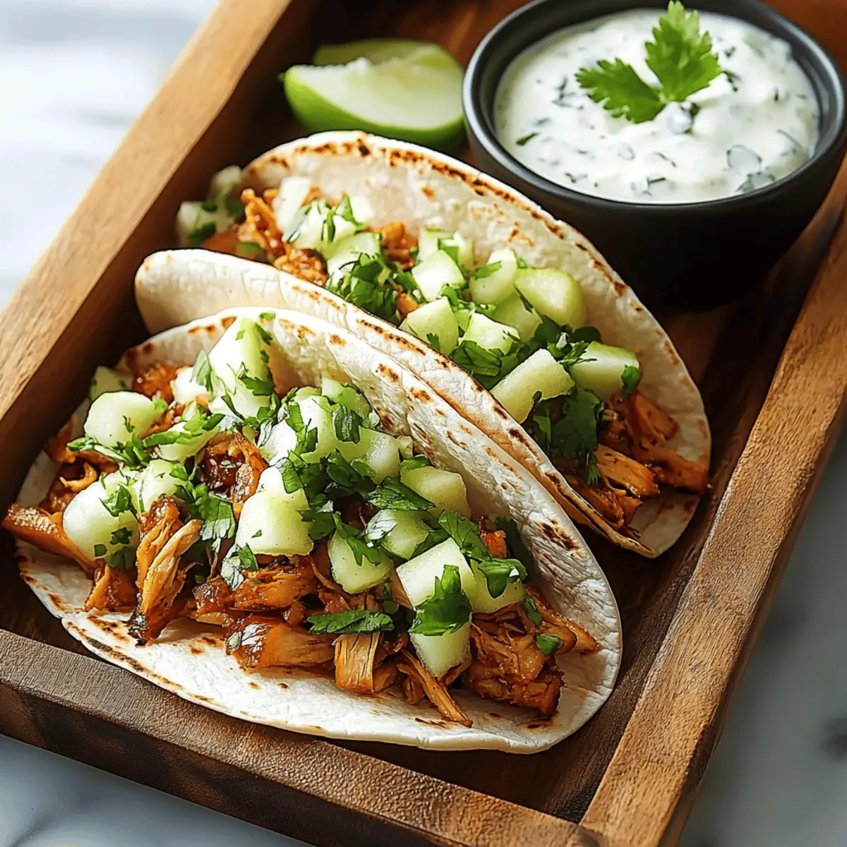 Warm your tortillas in a skillet or microwave until they are soft and pliable. Place a generous scoop of the seasoned jackfruit in the center of each tortilla, followed by a topping of the crisp green apple salsa. Drizzle the prepared sauce over the top, bringing together the flavors of your Jackfruit Tacos with Green Apple Salsa for a satisfying meal.