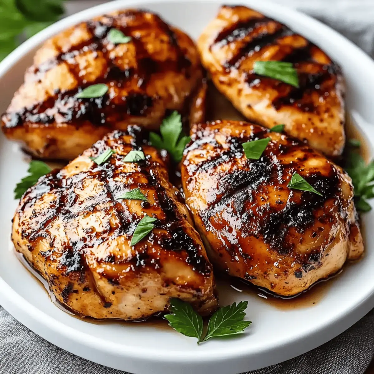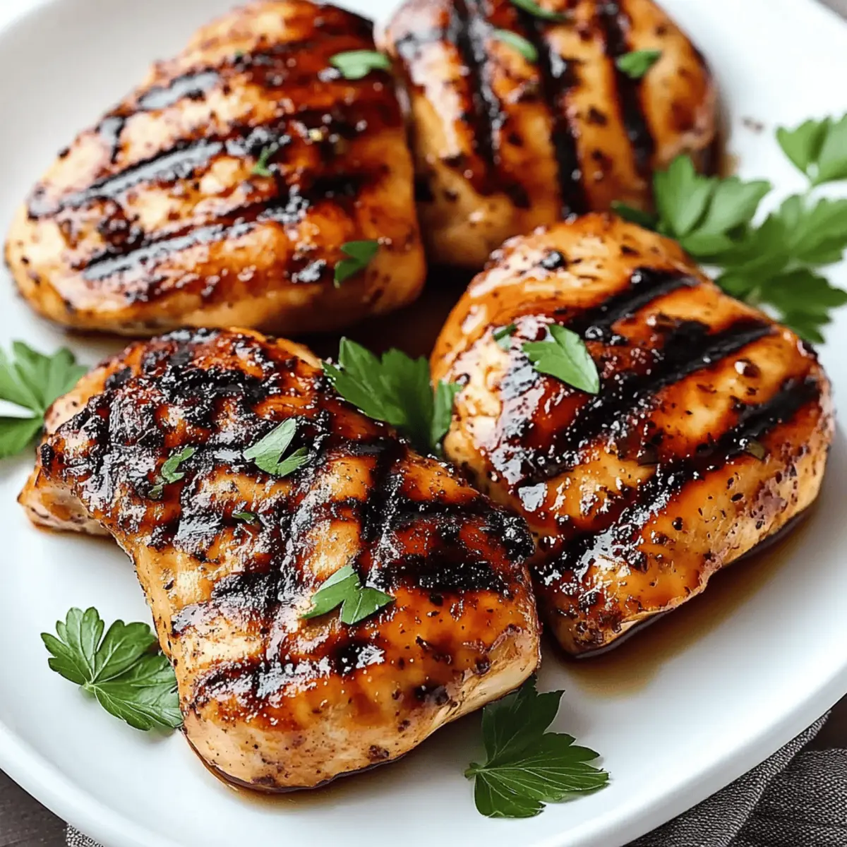 After cooking, remove your chicken from the grill or skillet and let it rest on a plate for 5 minutes. This resting time allows the juices to redistribute throughout the meat, enhancing tenderness and flavor. For added freshness, garnish with freshly chopped parsley or basil before slicing and serving your amazing Balsamic Chicken Marinade creation to family and friends.