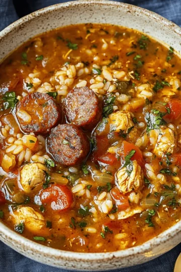 Hearty Spicy Jambalaya Soup with Andouille Sausage and Chicken