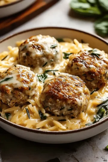 Juicy Baked Lemon Rosemary Chicken Meatballs with Creamy Orzo