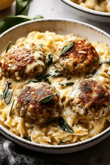 Juicy Baked Lemon Rosemary Chicken Meatballs with Creamy Orzo