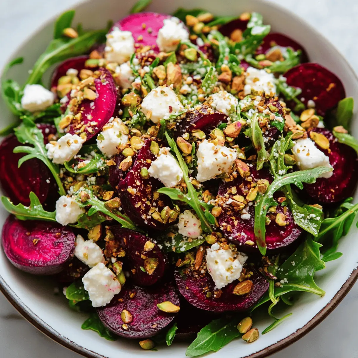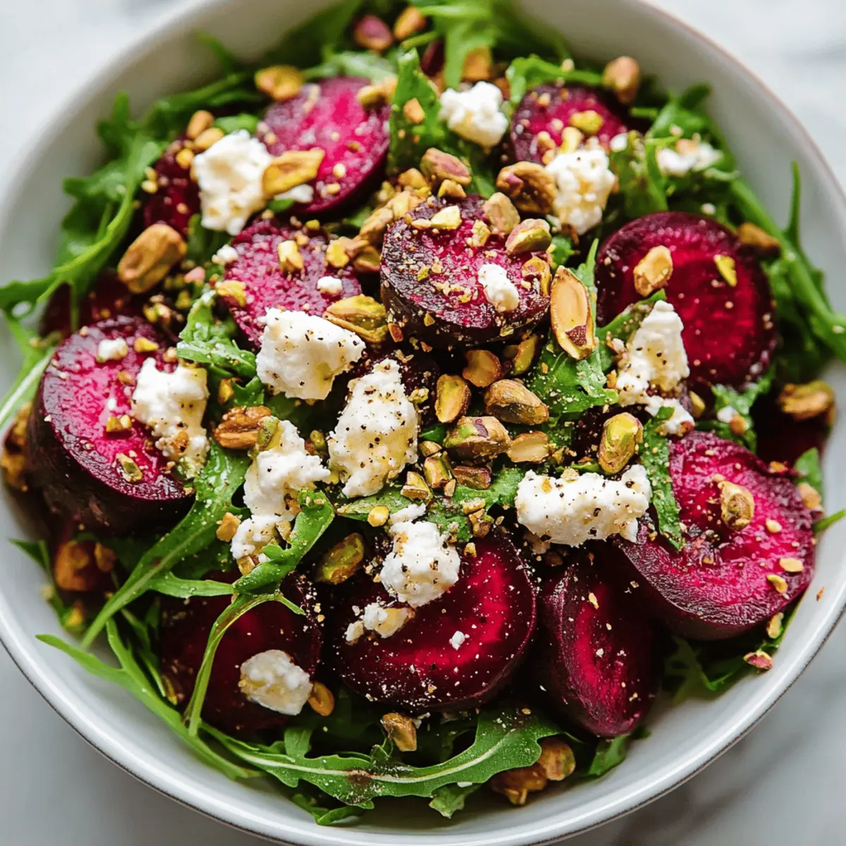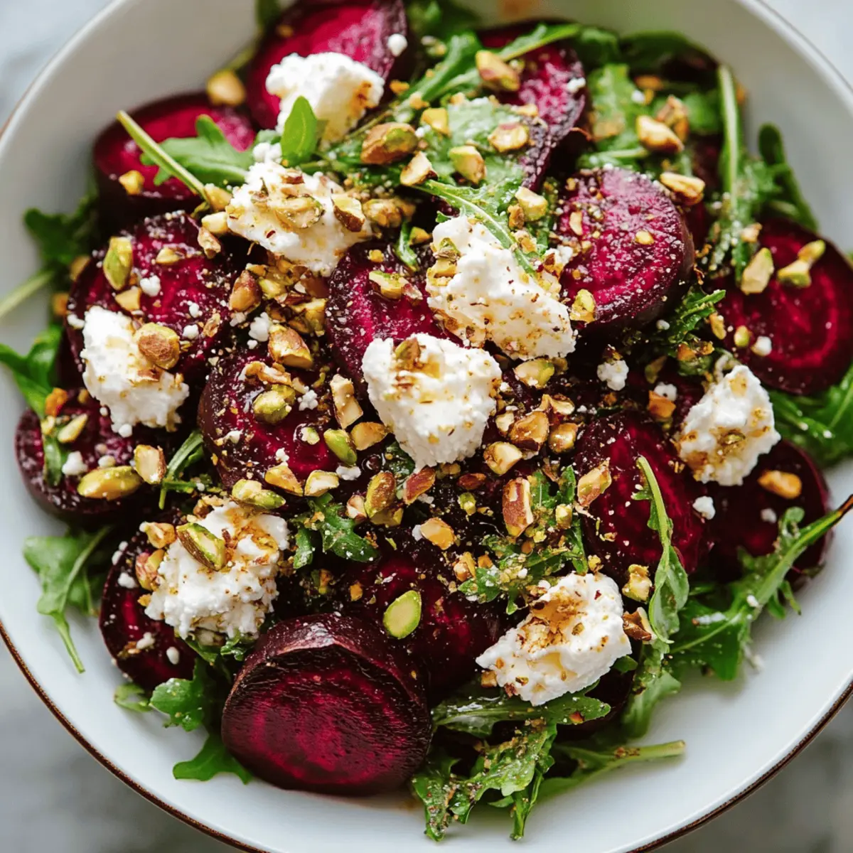 Delicious Roasted Beet Salad with Goat Cheese and Pistachios