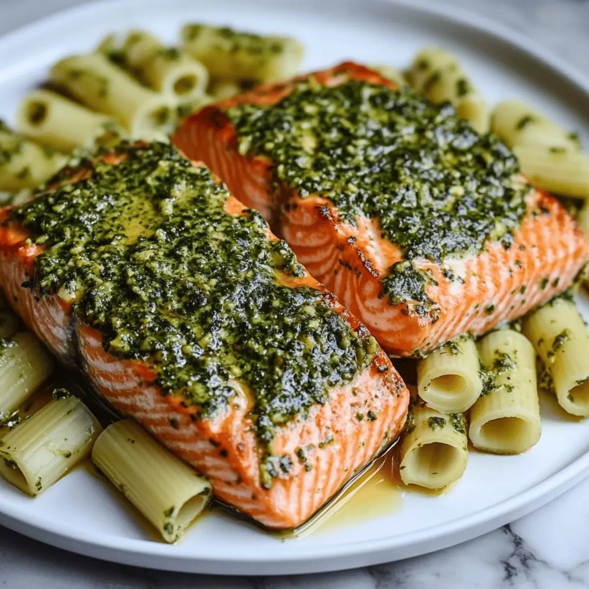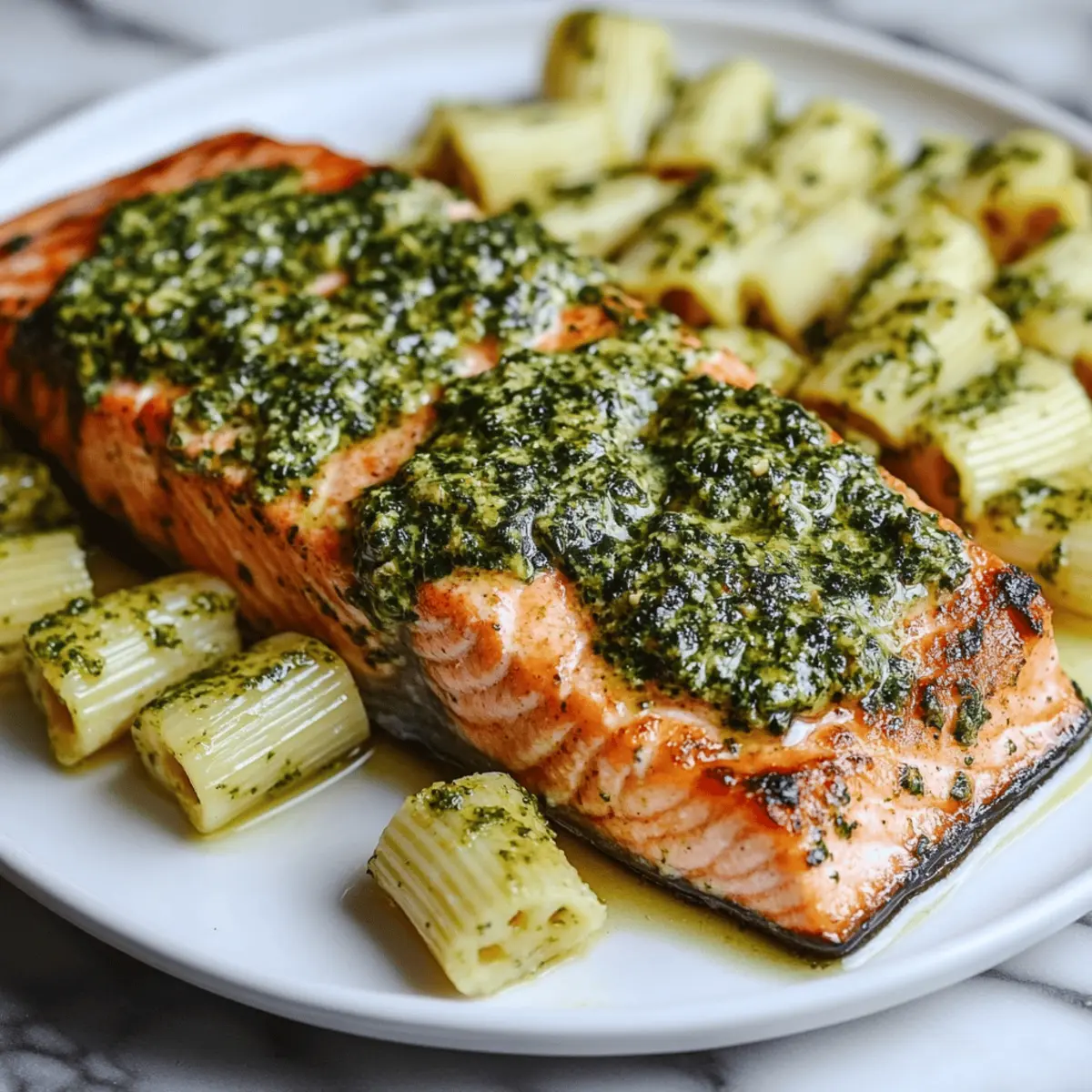 Carefully transfer the cooked salmon fillets to serving plates, ensuring to drizzle any leftover pesto butter from the skillet over the top. Add a fresh squeeze of lemon juice to brighten the dish right before serving. Optionally, garnish with toasted pine nuts or fresh basil for a touch of elegance and extra flavor.