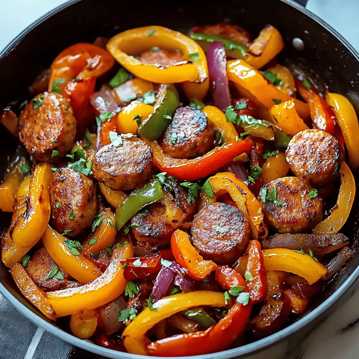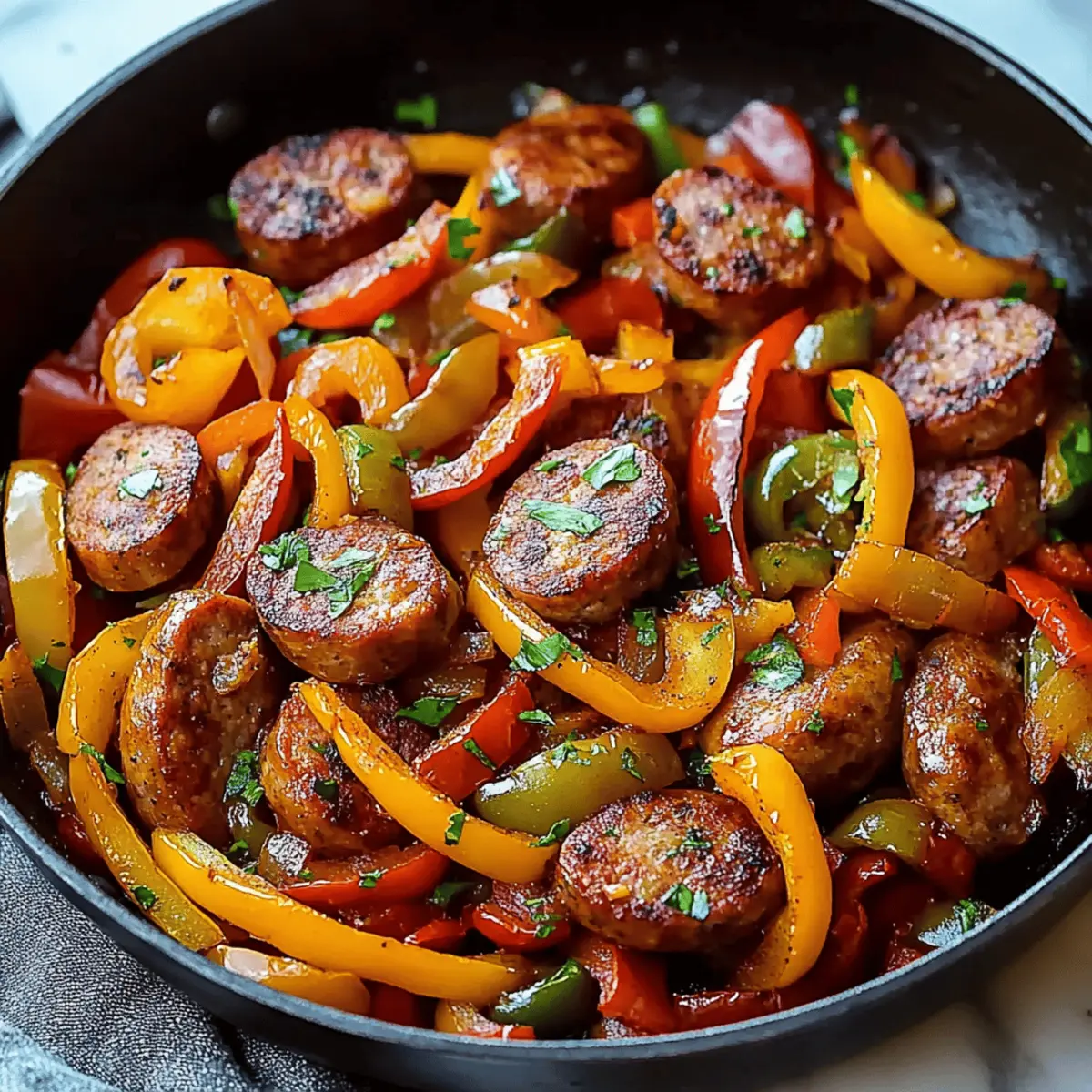 Storage Tips: This Sausage and Peppers Skillet keeps well. Store leftovers in an airtight container in the fridge for up to 3 days, and heat gently to preserve texture.