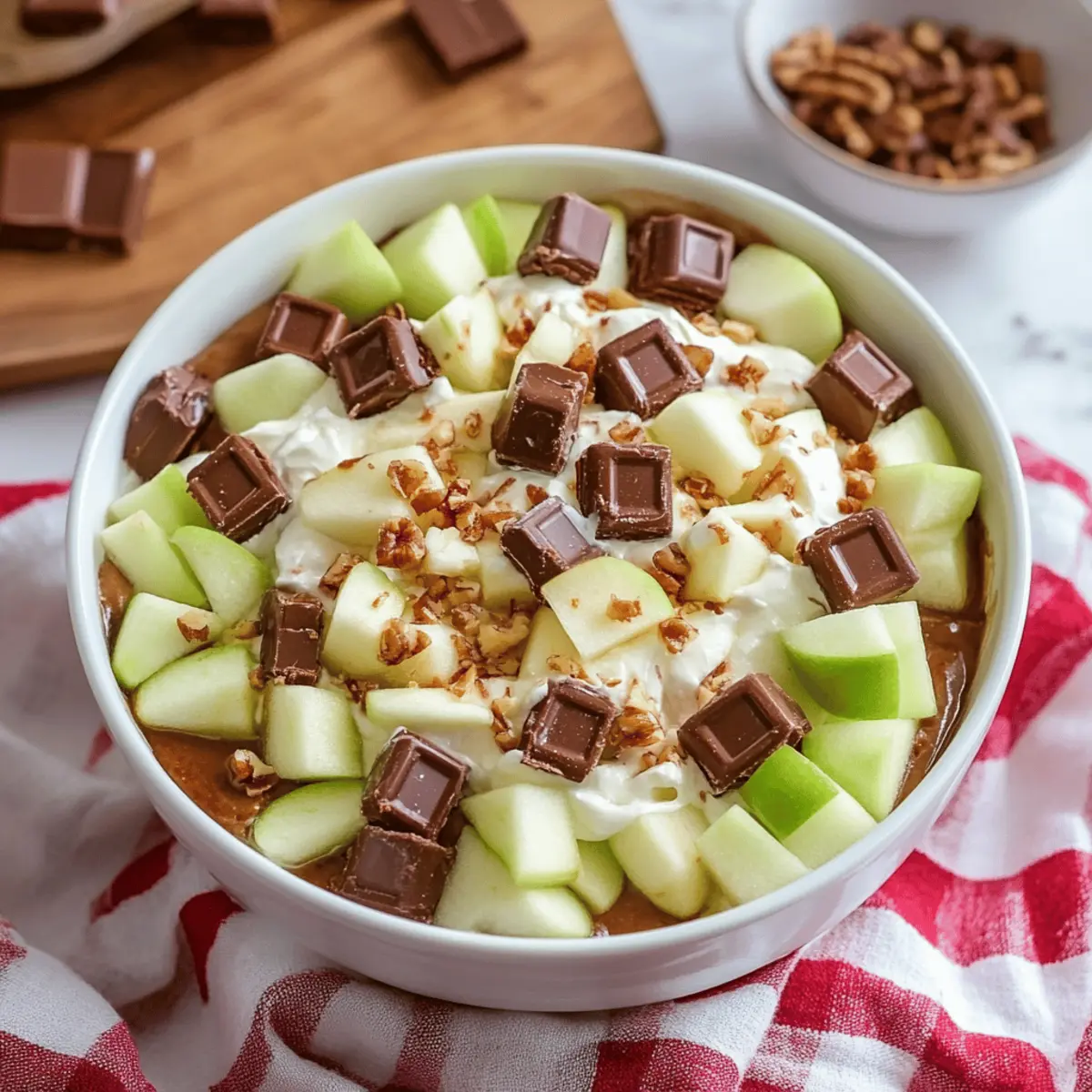 As I stood in the kitchen, the crunch of crisp Granny Smith apples filled the air, mingling with the sweet scent of chopped Snickers bars. This Snickers Apple Salad isn’t just a dessert; it’s a celebration of textures and flavors, bringing together that satisfying crunch, rich creaminess, and the delightful surprise of chocolatey goodness. Best of all, it's a no-cook dessert that you can whip up in minutes, making it a perfect choice for last-minute gatherings or a sweet indulgence after dinner. This quick dessert will have your family and friends asking for seconds, and trust me, it’s one that you'll want to make again and again. What do you say we dive into this deliciously simple recipe that’s guaranteed to impress?