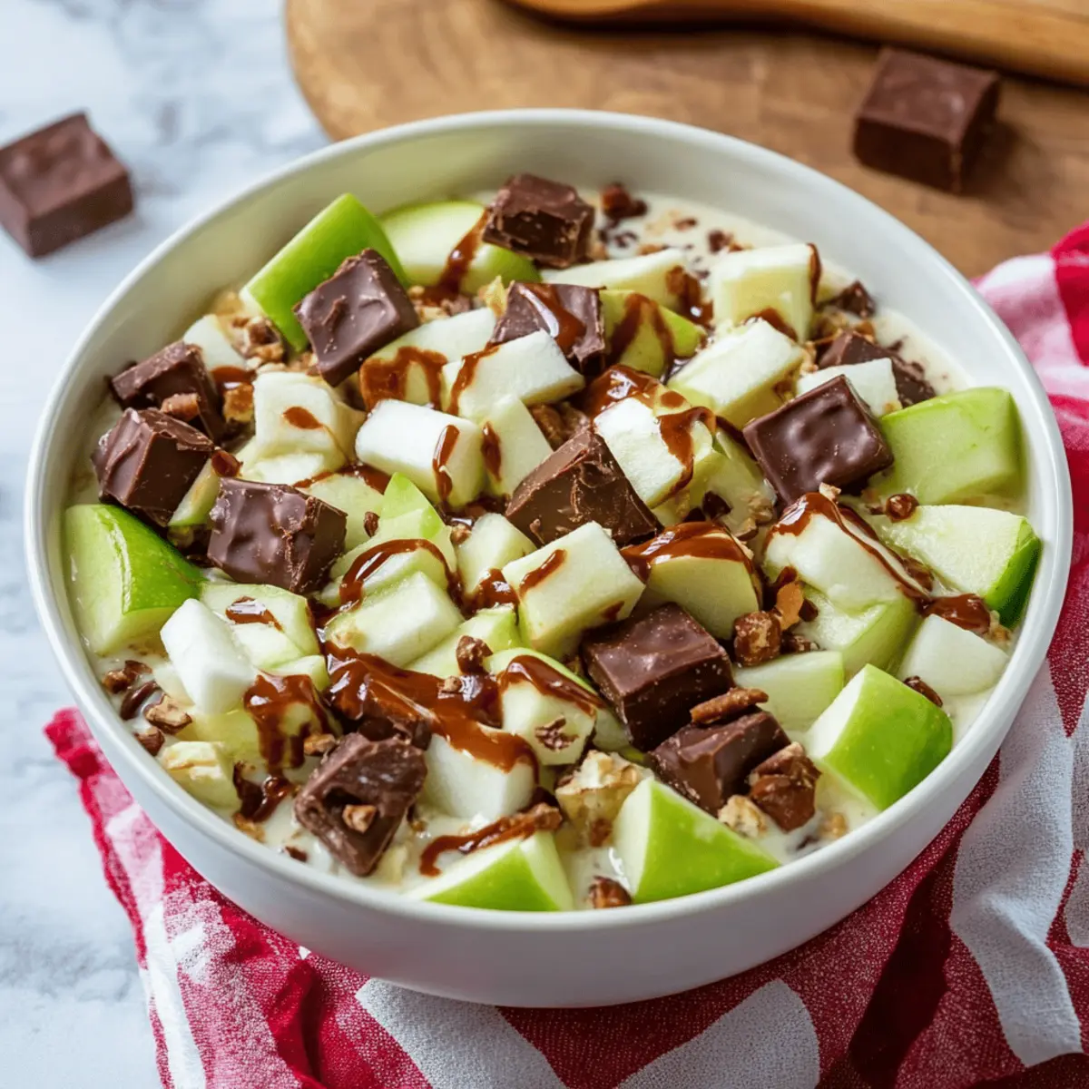 - Experiment With Flavors: Don’t hesitate to experiment! Different apple varieties or adding candies like Reese's can give a fun twist to your Snickers Apple Salad.